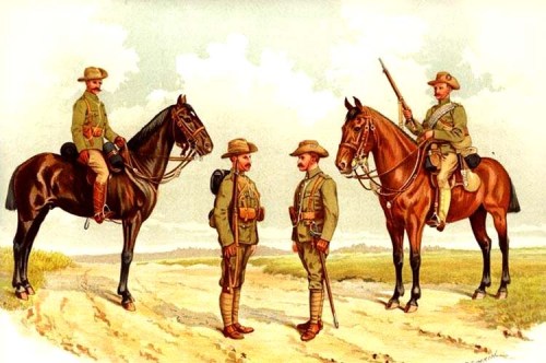 There is a certain amount of confusion about which unit William was serving in when he died. Two local Nottingham websites say that he was serving as a trooper in “The South African Constabulary”. On the other hand, the website with the Roll of Honour from the Nottingham War Memorial of the Boer War says that William Heath was a Private in the 11th Company of the 3rd Battalion of the Imperial Yeomanry. His service number was ‘1972’. Here are the Imperial Yeomanry in a colour print: