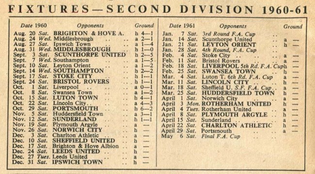 The programme also contained the results of past matches that season.