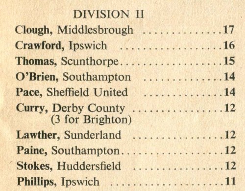 The intervening 61 years have not treated all of the teams above very well. There were also lists of the leading goal scorers in each division.