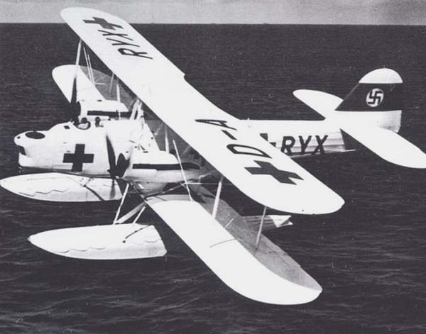 The Germans also made extensive use of the Heinkel He59 which was unarmed and painted white with big red cross: